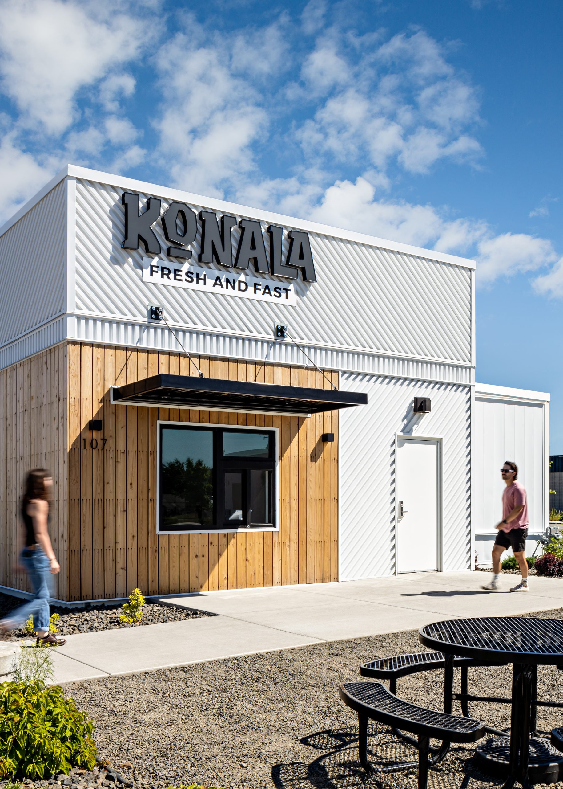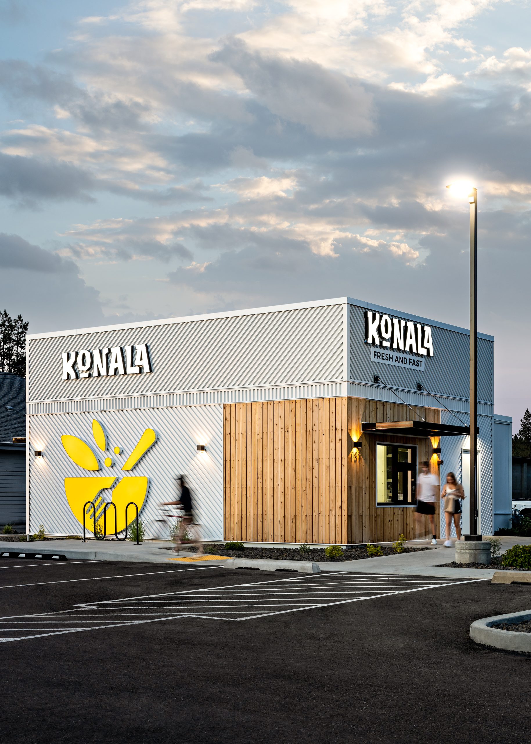 Description: Working with Konala across multiple locations throughout the Pacific Northwest has been an instructive case study in fast casual franchising. Konala is a design forward concept centered on healthy, approachable food served with speed and convenience. Our team collaborated closely to shape an environment that balances broad appeal with comfort and cost efficiency, ensuring the brand translates seamlessly across locations while remaining accessible to a wide audience. Konala is one of 2025’s fastest-growing franchises, and we’re honored to have designed their flagship location alongside owners Trace and Jammie Miller.